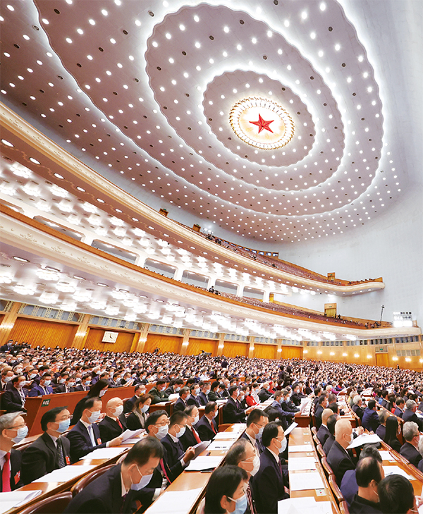 党的十八大以来,人民代表大会制度不断完善。图为2022年3月8日,十三届全国人大五次会议在北京人民大会堂举行第二次全体会议。 新华社记者 金立旺/摄