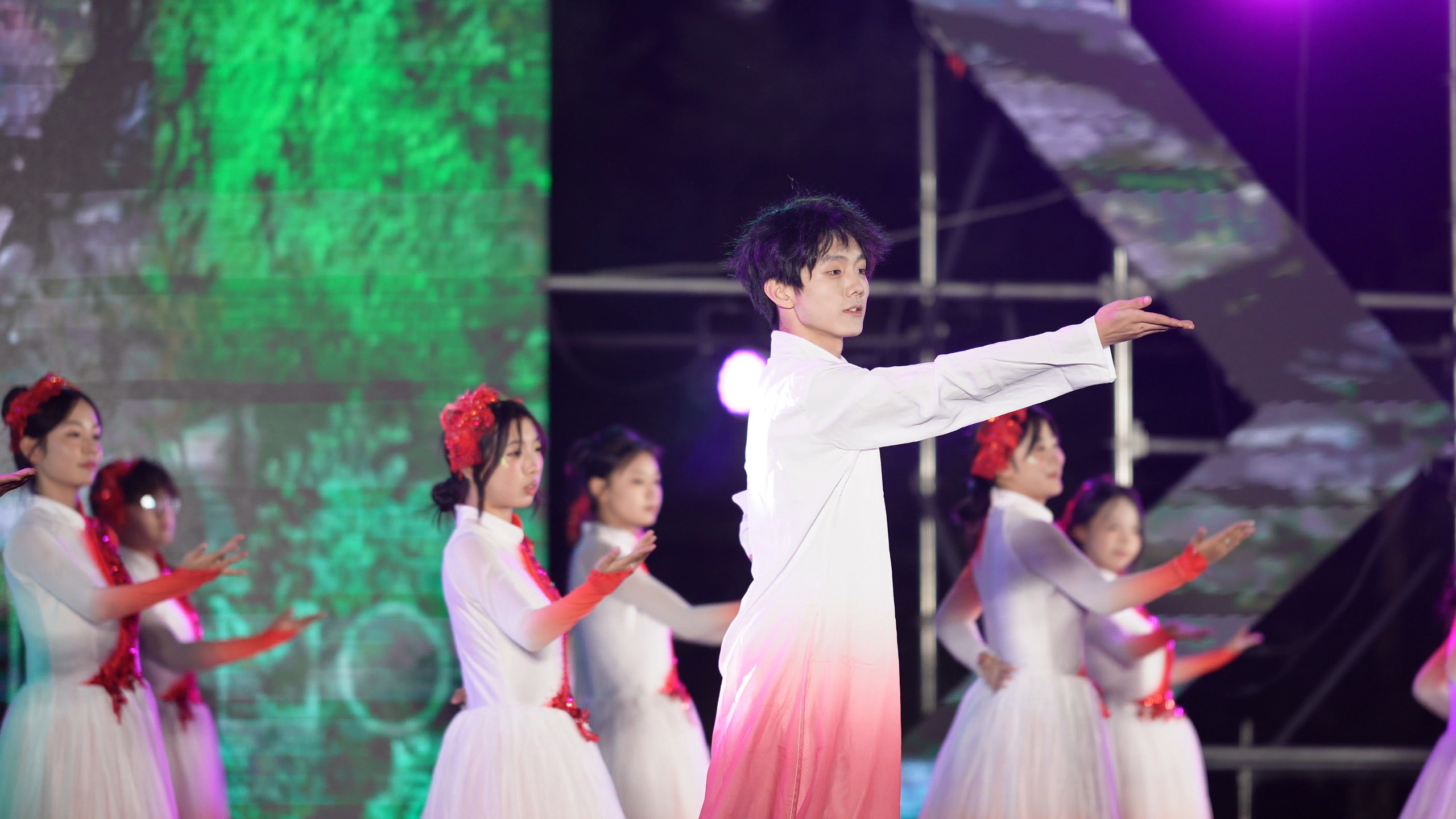 《水龙吟》展现了中华武术的博大精深和学院学子的飒爽英姿;乐队《我们的时光》和歌曲《歌唱祖国》更是将现场氛围点燃,让每一位观众都感受到了祖国的强大和民族的自豪。情景剧《曙光》则以生动的情节和深刻的寓意,展现了学院学子对未来的美好期许和不懈追求。晚会在全场大合唱《歌唱祖国》的真挚歌声中圆满落下帷幕。